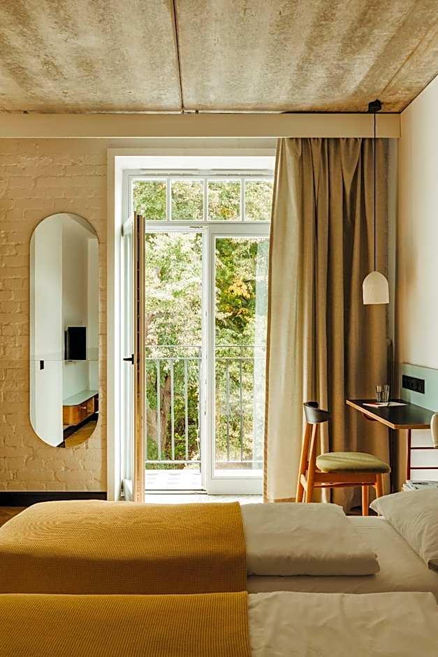This double room features a private entrance and soundproofing. Some are located on upper floor and have a balcony with a forest view, while others are on the ground floor with no balcony.